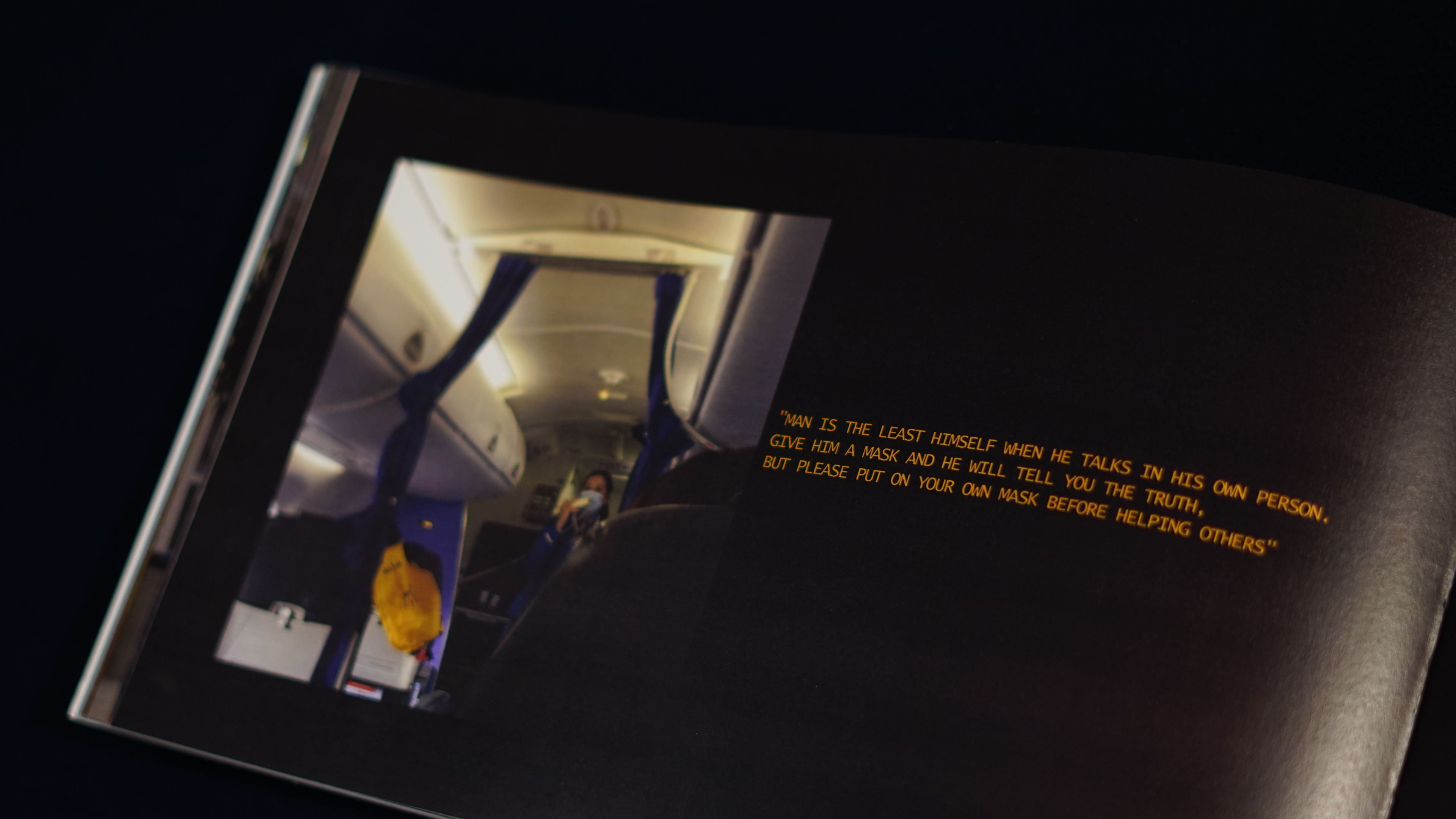Handmade photobook with pictures from airports and flights during corona. With (modified) quotes from Drake, Kafka, Kerouac and Wilde.